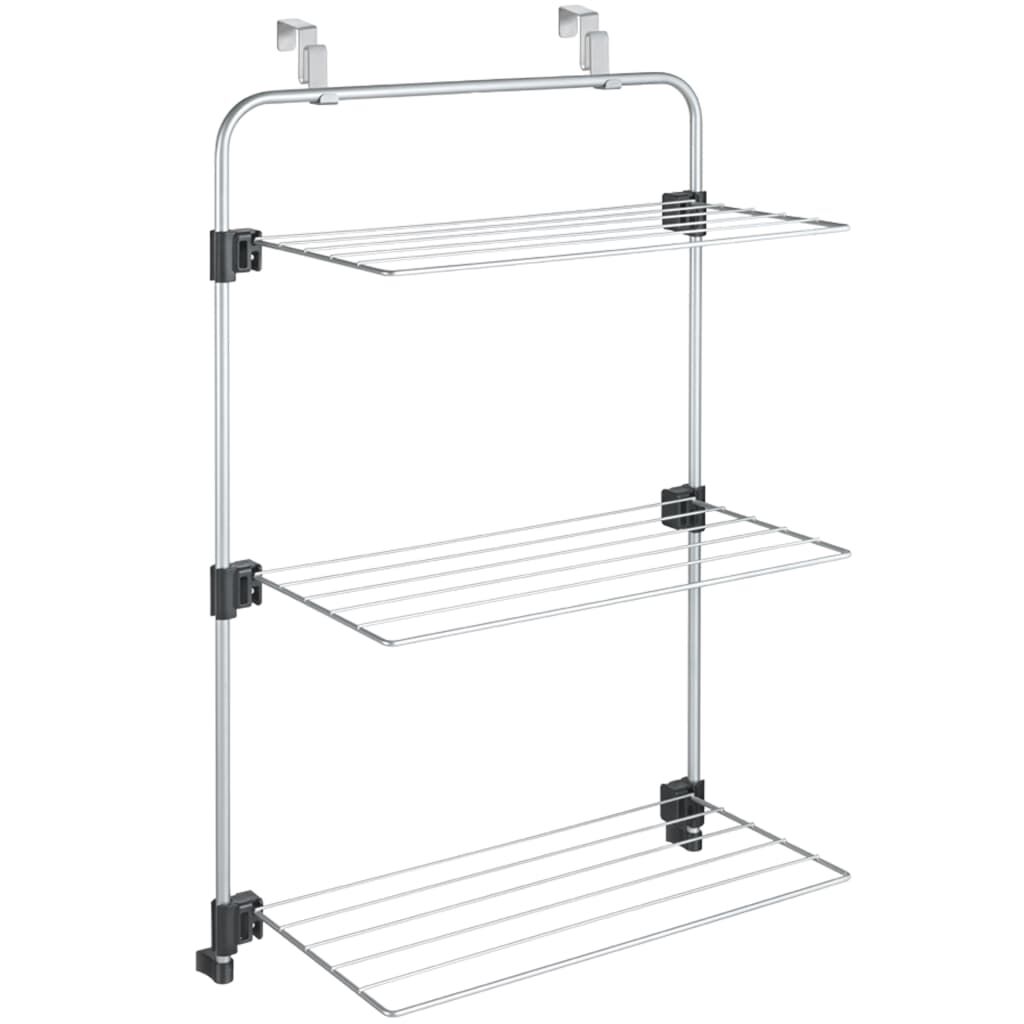 Der Wäschetrockner verfügt über reversible Haken, die für fast alle Türen und Duschwände geeignet sind (mit einer Dicke von 0 - 4 cm). Der 3-stufige Hängetrockner hat eine Trockenlänge von insgesamt 11 Metern. Er ist Teil der Trend-Kollektion und zeichnet sich durch eine silbergraue Beschichtung in Kombination mit satinschwarzem Kunststoff aus.