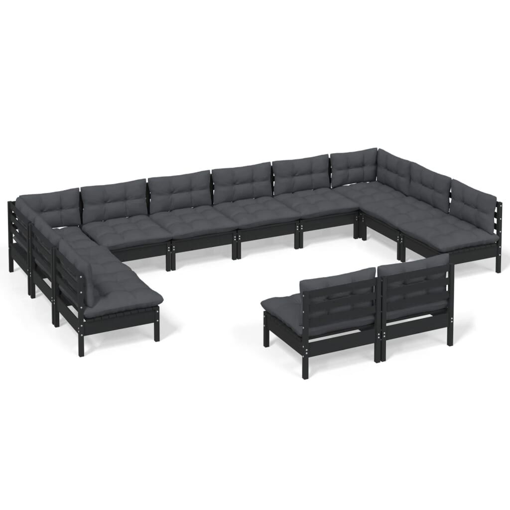 vidaXL 12-tlg. Garten-Lounge-Set mit Kissen Schwarz Kiefer Massivholz