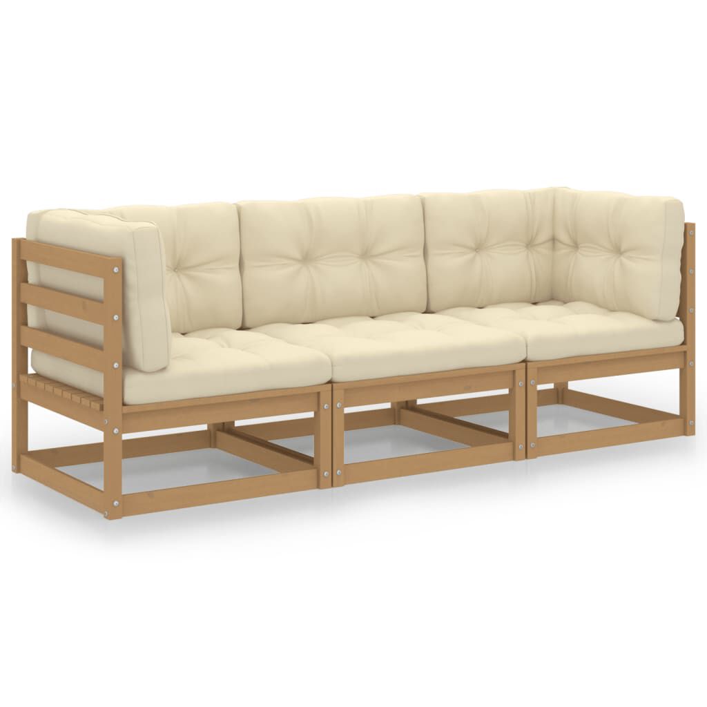 vidaXL 3-Sitzer-Gartensofa mit Kissen Kiefer Massivholz