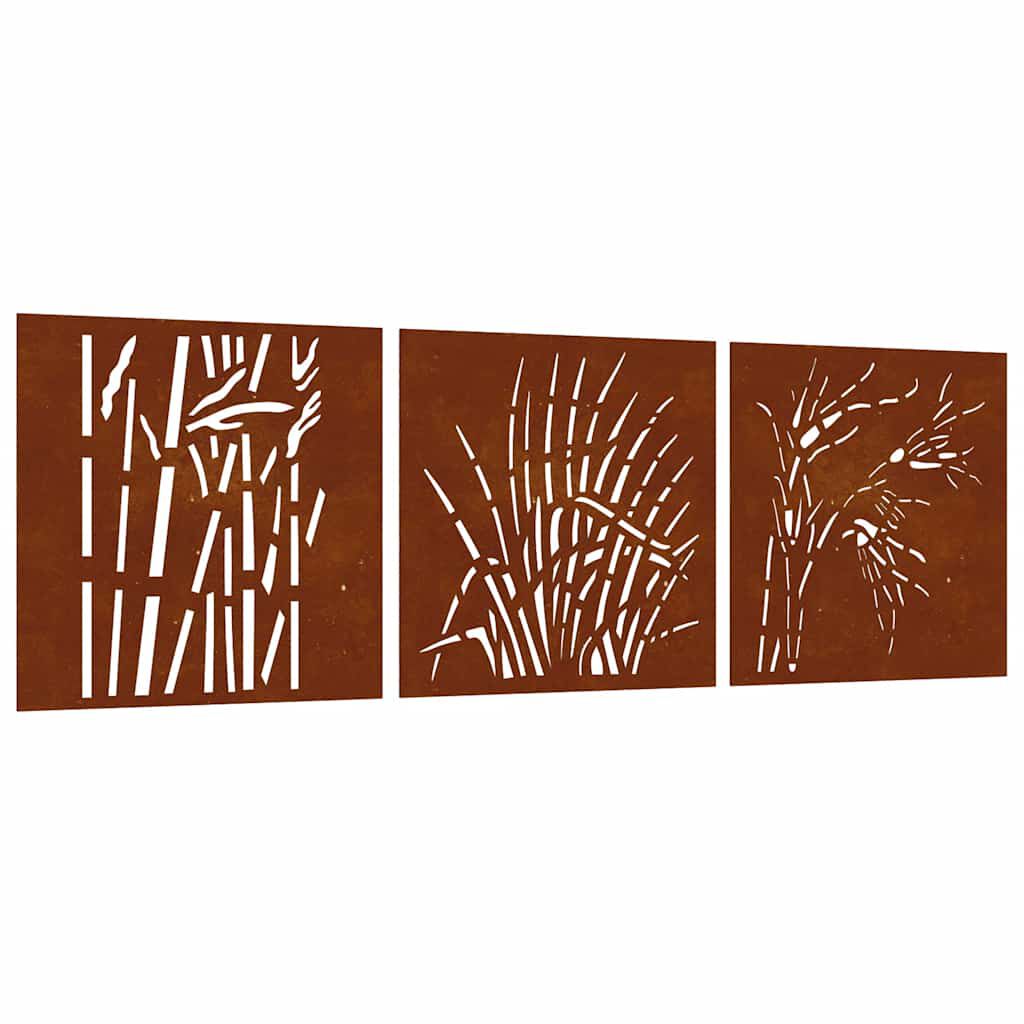 vidaXL 3-tlg. Garten-Wanddeko 55x55 cm Cortenstahl Gras-Design