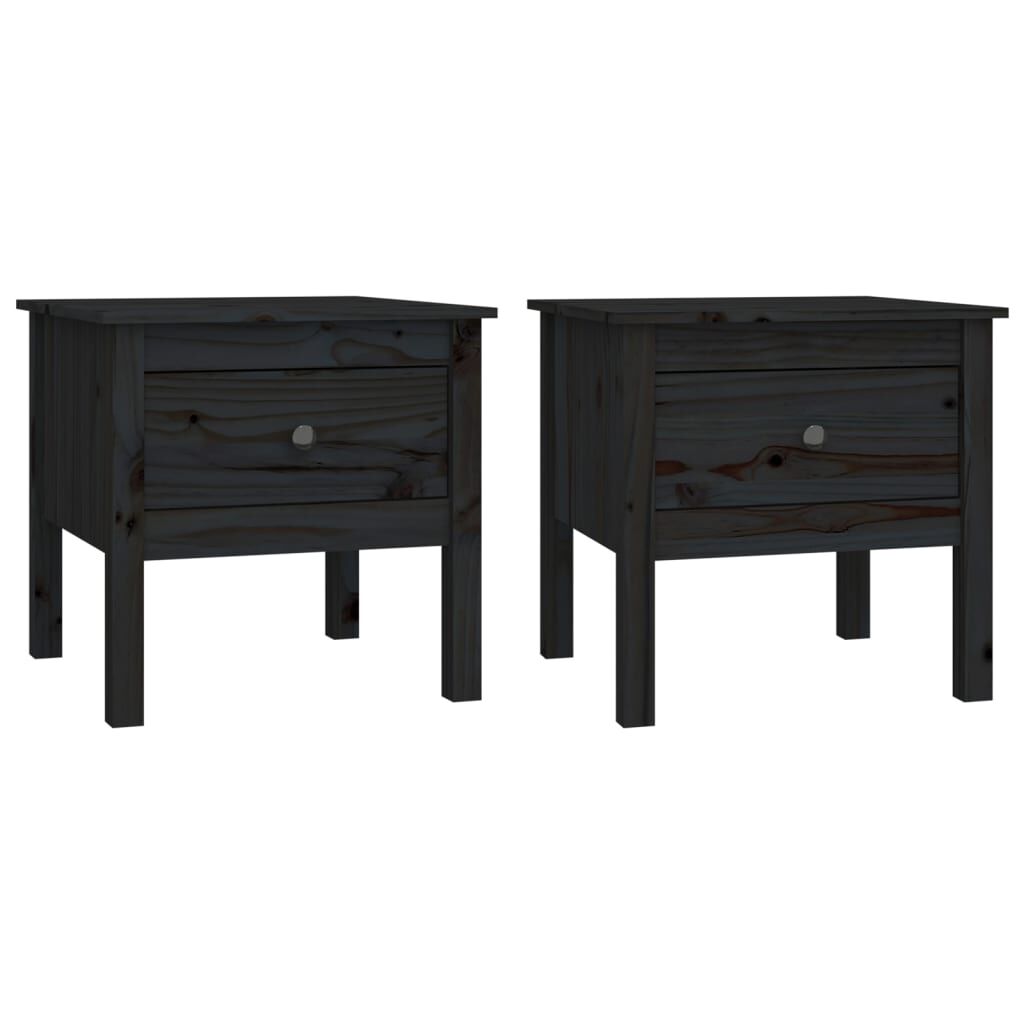 vidaXL Beistelltische 2 Stk. Schwarz 50x50x49 cm Massivholz Kiefer