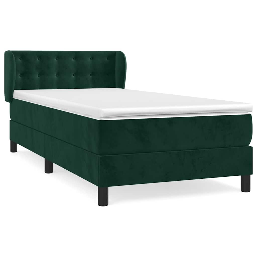 vidaXL Boxspringbett mit Matratze Dunkelgrün 90x200 cm Samt