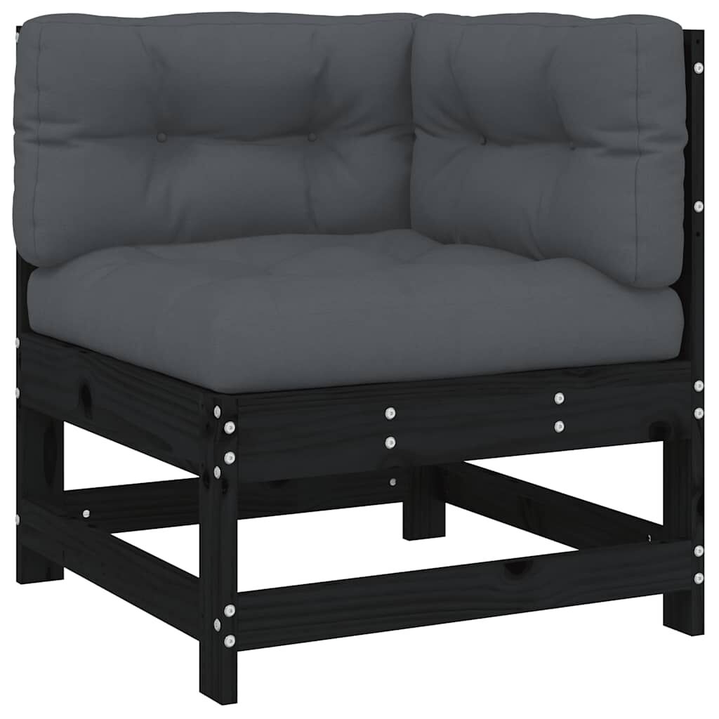 vidaXL Ecksofa mit Kissen Schwarz Massivholz Kiefer