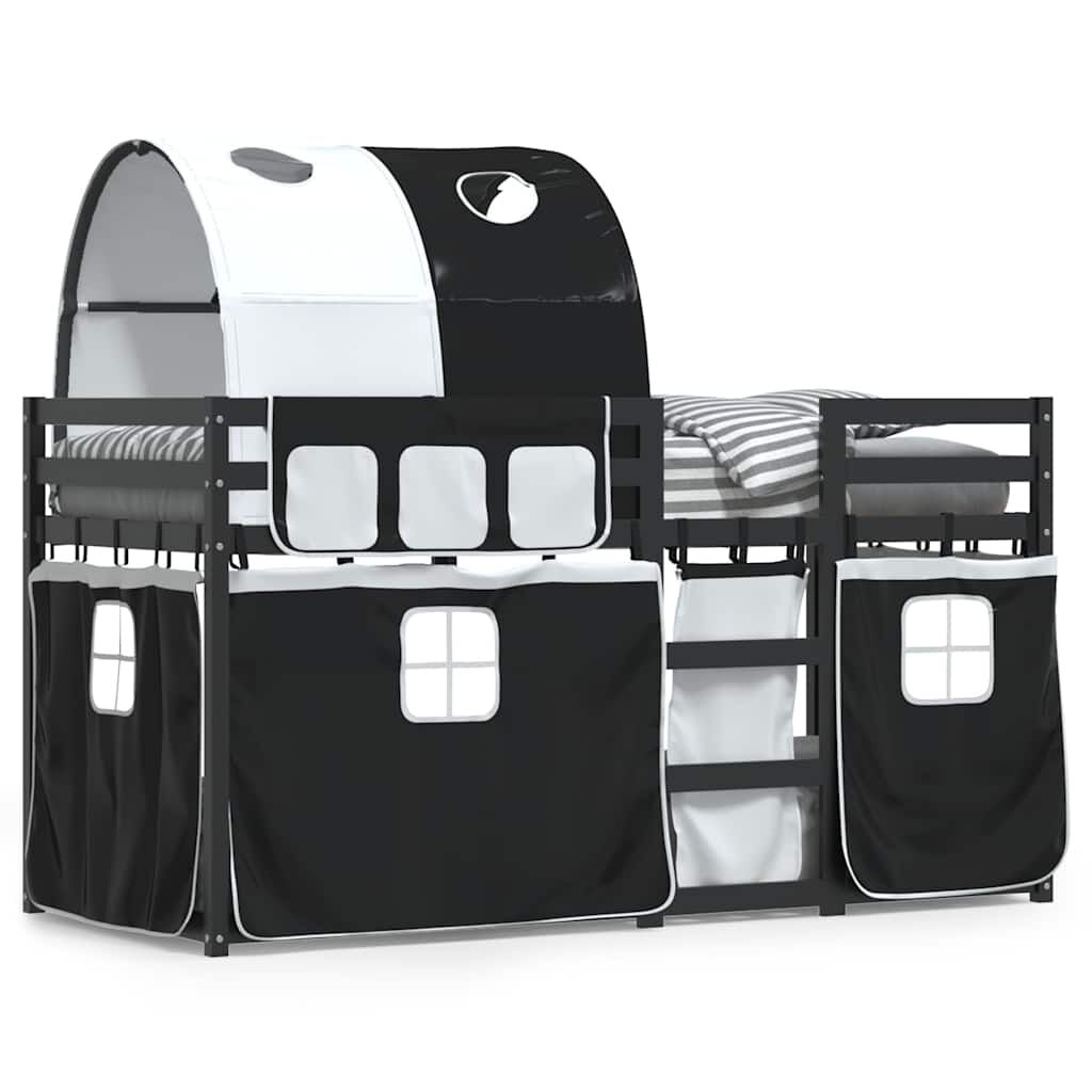 vidaXL Etagenbett mit Vorhängen Weiß & Schwarz 90x190 cm Kiefernholz