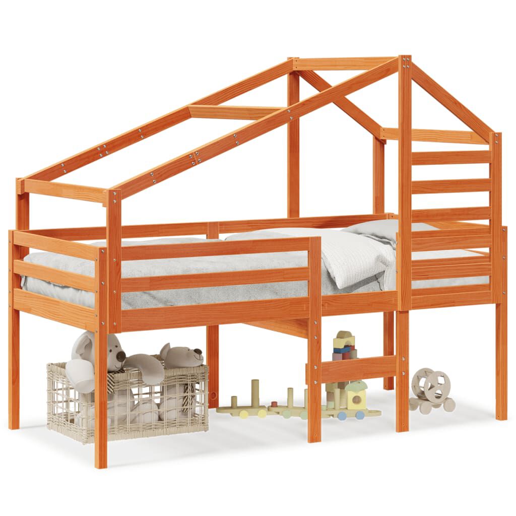 vidaXL Hochbett mit Dach Wachsbraun 90x190 cm Massivholz Kiefer