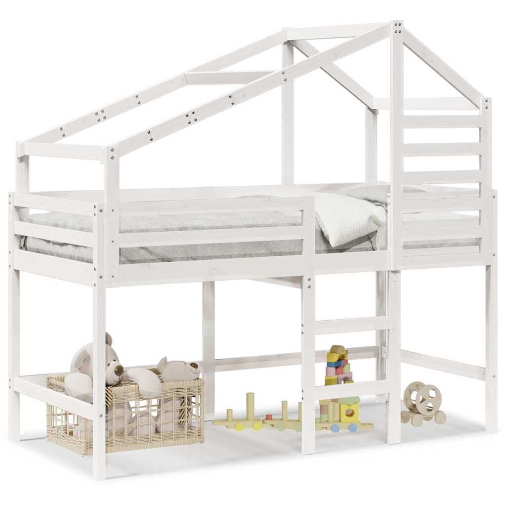 vidaXL Hochbett mit Leiter und Dach Weiß 90x190 cm Massivholz Kiefer