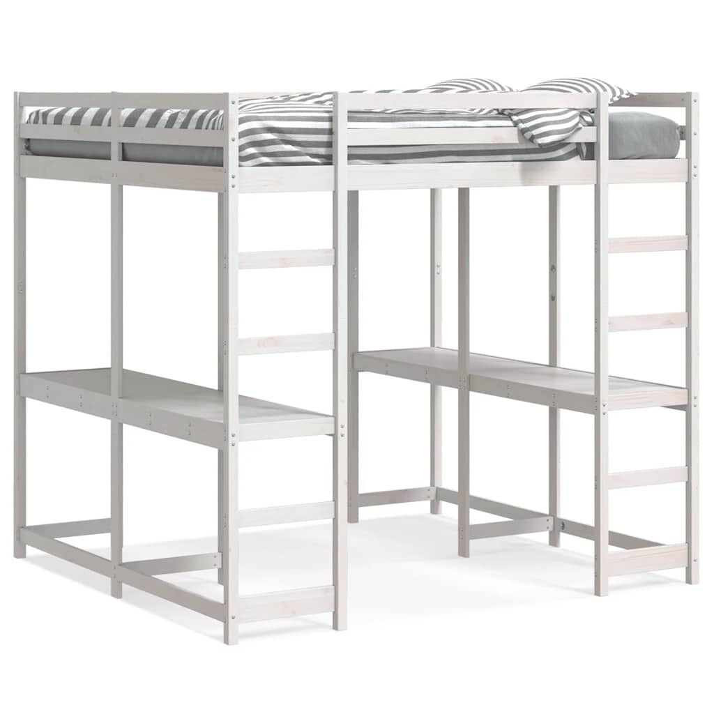 vidaXL Hochbett mit Schreibtisch & Leiter Weiß 140x200 cm Kiefernholz