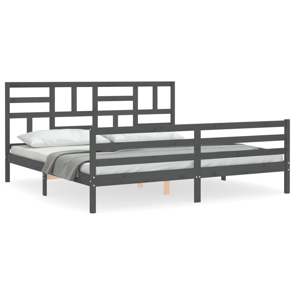 vidaXL Massivholzbett mit Kopfteil Grau 200x200 cm