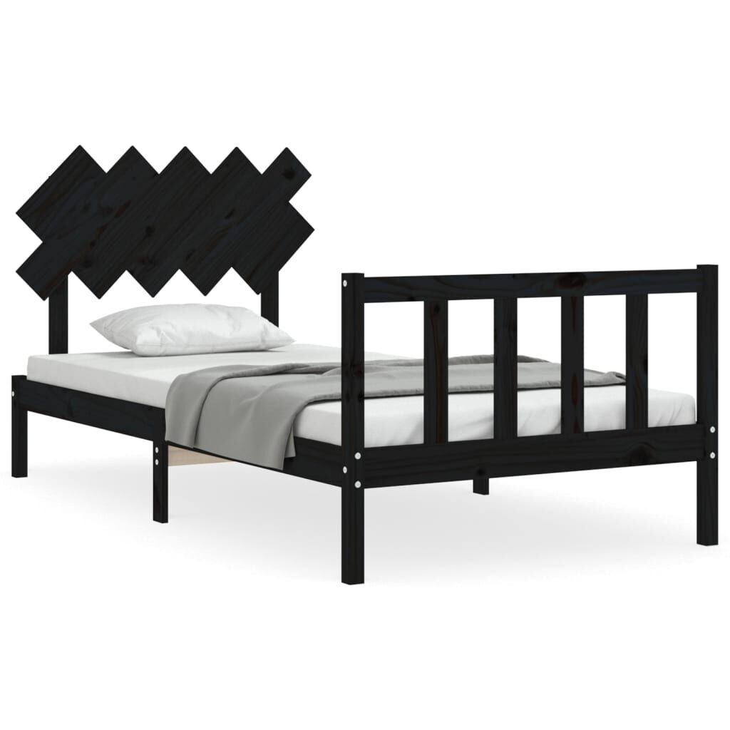 vidaXL Massivholzbett mit Kopfteil Schwarz 100x200 cm