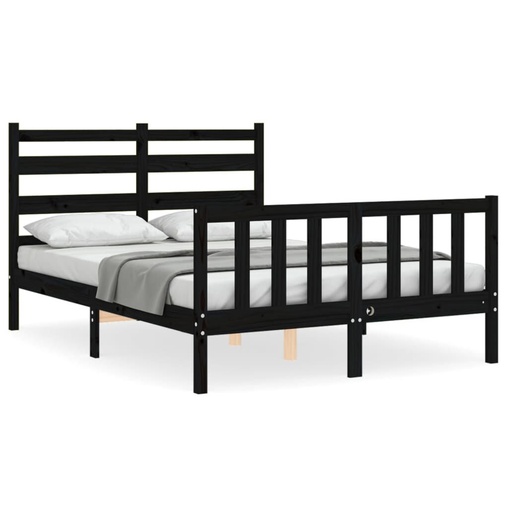 vidaXL Massivholzbett mit Kopfteil Schwarz