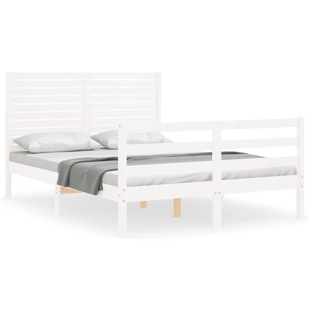 vidaXL Massivholzbett mit Kopfteil Weiß 120x200 cm