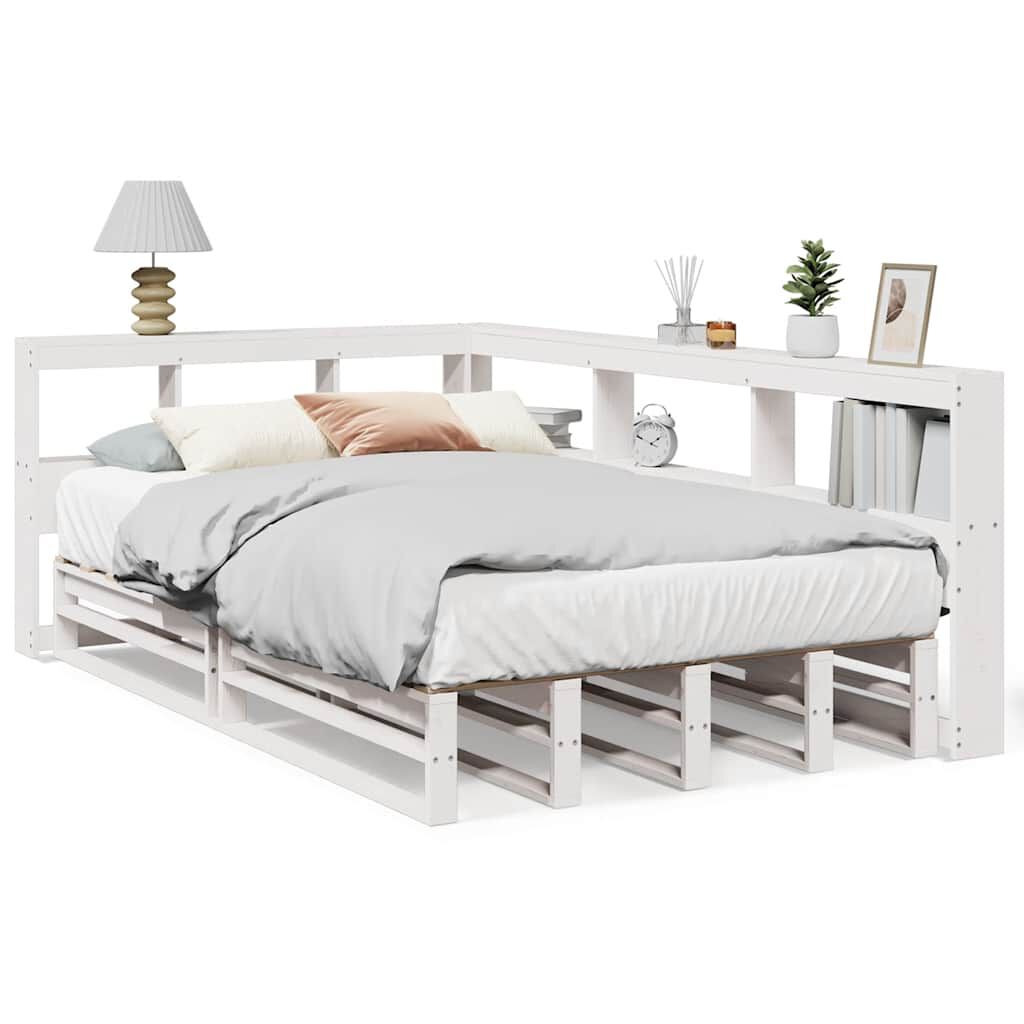 vidaXL Massivholzbett mit Regal ohne Matratze Weiß 120x200 cm Kiefer