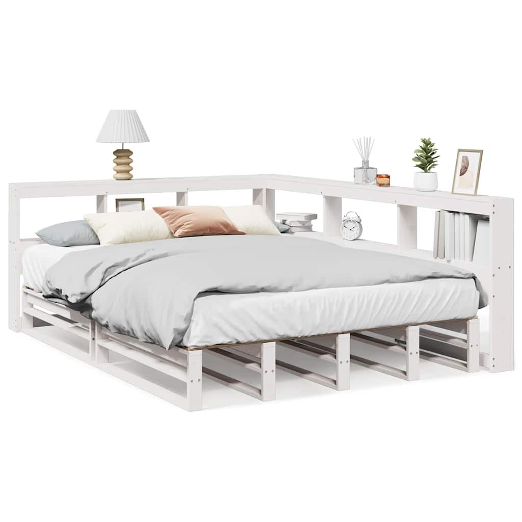 vidaXL Massivholzbett mit Regal ohne Matratze Weiß 160x200 cm Kiefer