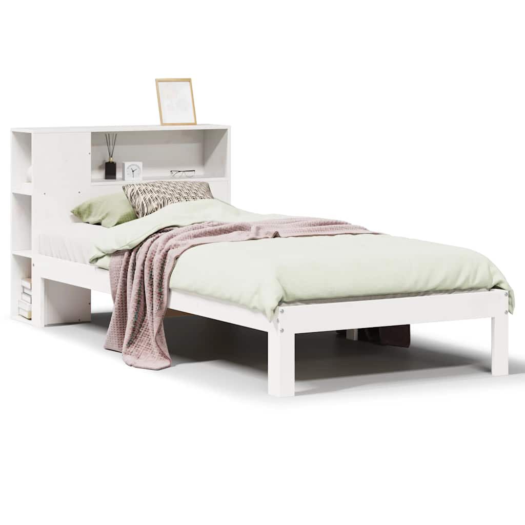 vidaXL Massivholzbett mit Regal ohne Matratze Weiß 75x190 cm Kiefer