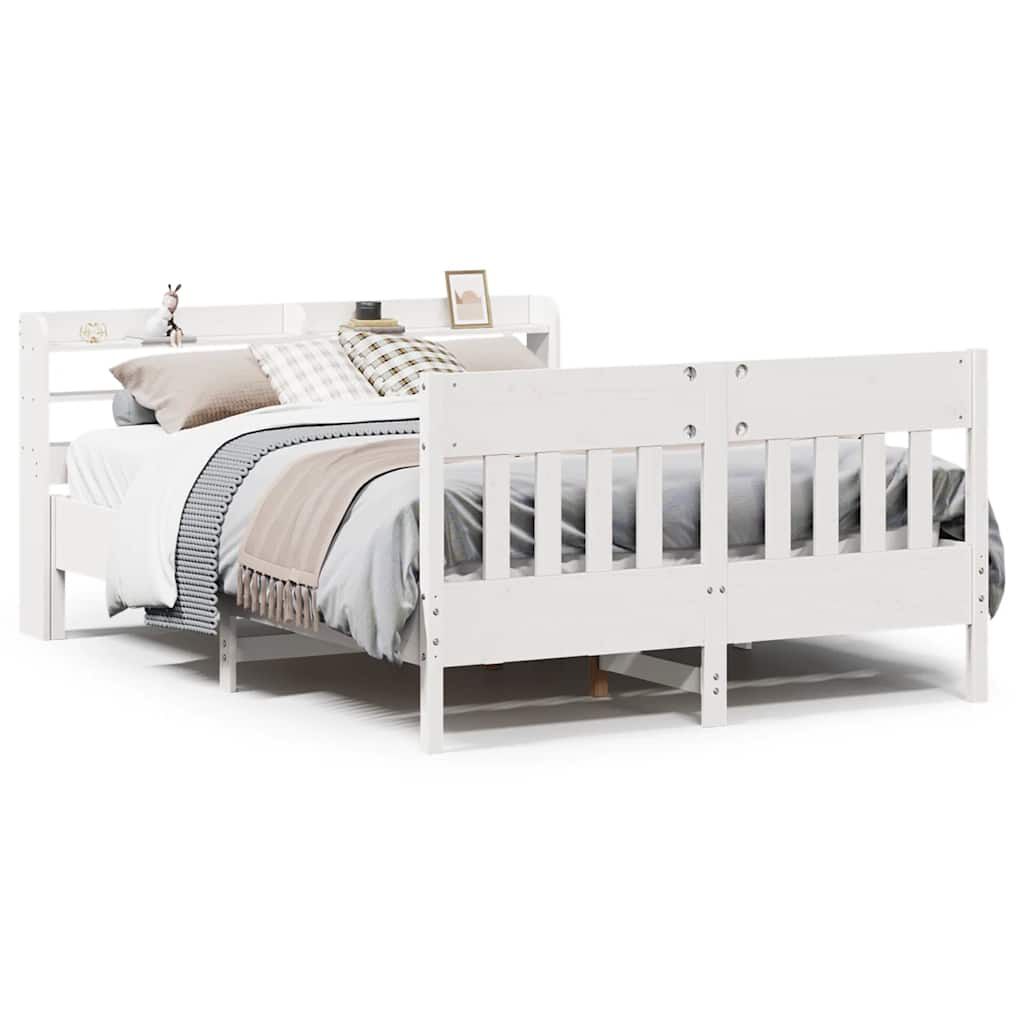 vidaXL Massivholzbett ohne Matratze Weiß 135x190 cm Kiefernholz
