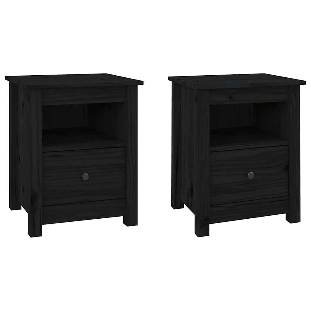 vidaXL Nachttische 2 Stk. Schwarz 40x35x49 cm Massivholz Kiefer