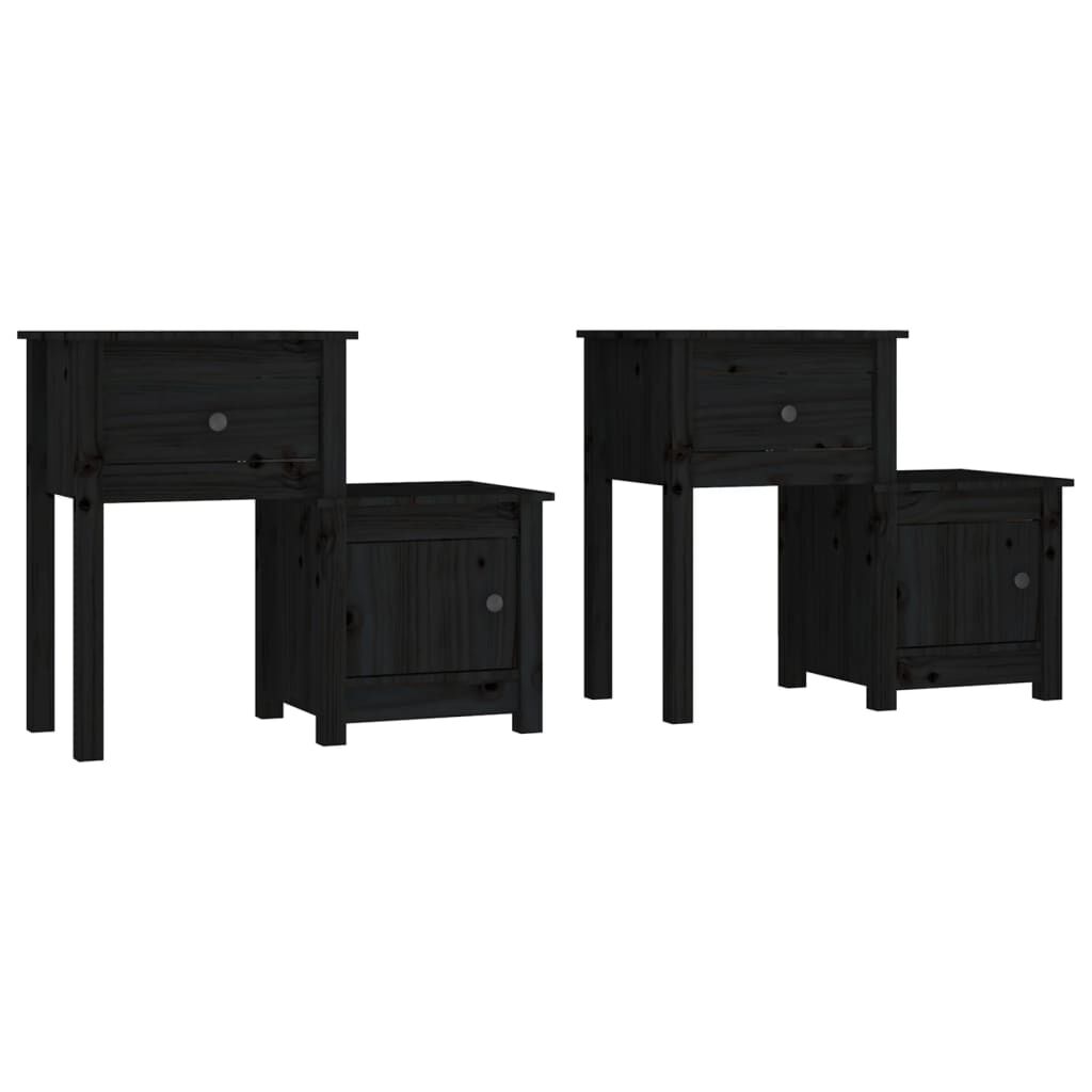 vidaXL Nachttische 2 Stk. Schwarz 79,5x38x65,5 cm Massivholz Kiefer