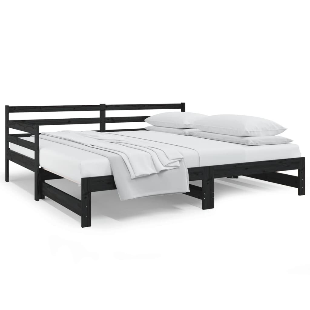 vidaXL Tagesbett Ausziehbar Schwarz 2x(90x190) cm Massivholz Kiefer