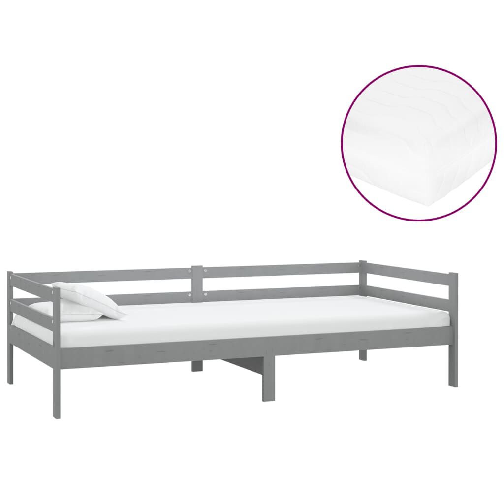 vidaXL Tagesbett mit Matratze 90x200 cm Grau Kiefer Massivholz