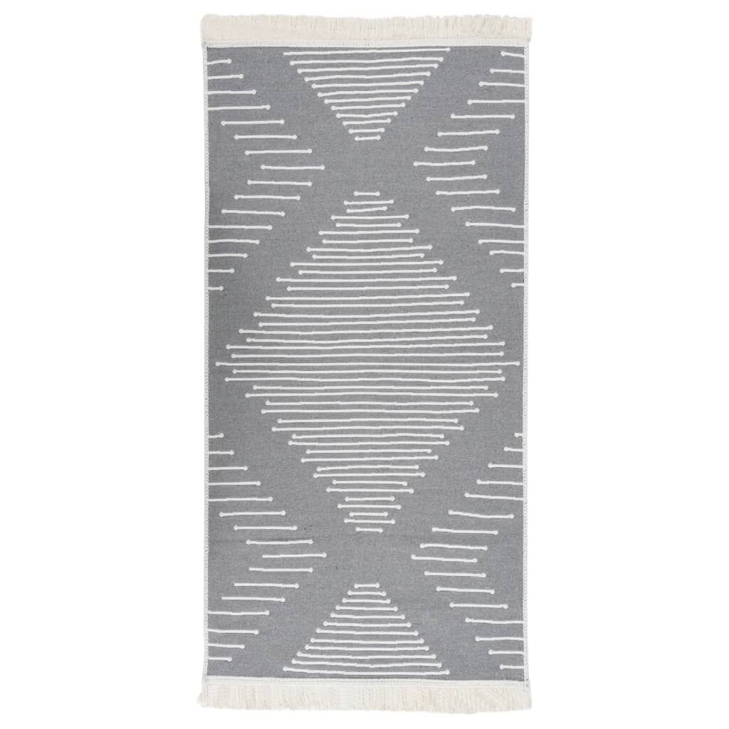 Zu 100 % aus Baumwolle gefertigt, fühlt sich dieser Teppich weich und angenehm auf nackten Füßen an. Mache dir aber keine Sorgen, wenn der Teppich mal schmutzig wird: Dieser Innenteppich kann in der Waschmaschine bei 30 °C im Feinwaschgang gewaschen werden. Da es sich um einen Wendeteppich handelt, lässt er sich beidseitig verwenden. Darüber hinaus kann er auch als Decke dienen, wenn du ein Nickerchen machst.