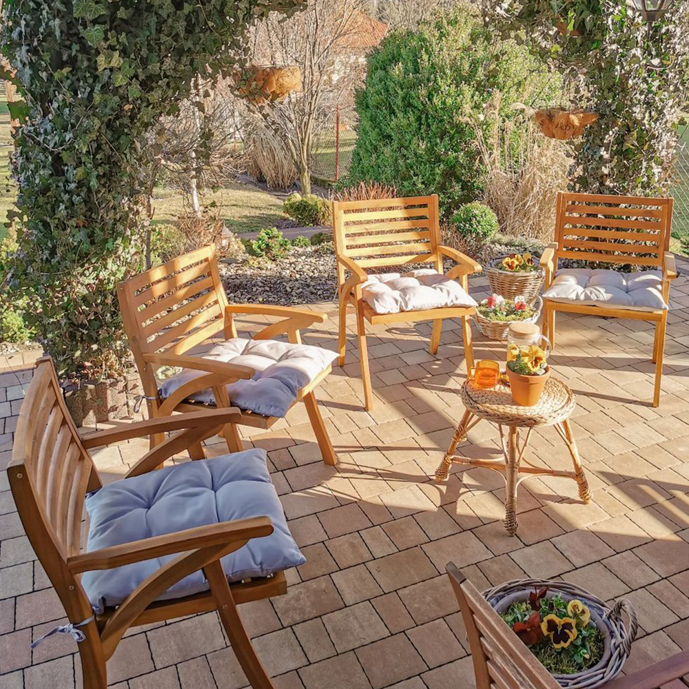 Ewa liebt es, ihren Garten zu gestalten, um einen gemütlichen Rückzugsort zu schaffen, perfekt für Arbeit, Entspannung und gesellige Zusammenkünfte. Entdecke ihre Favoriten, wie die zeitlosen Akazienholz-Gartenstühle mit bunten Kissen. "Diese Stühle sind schön und langlebig, während ihre warme Farbe Gemütlichkeit an meinen Lieblingsplatz im Garten bringt", teilt sie mit.