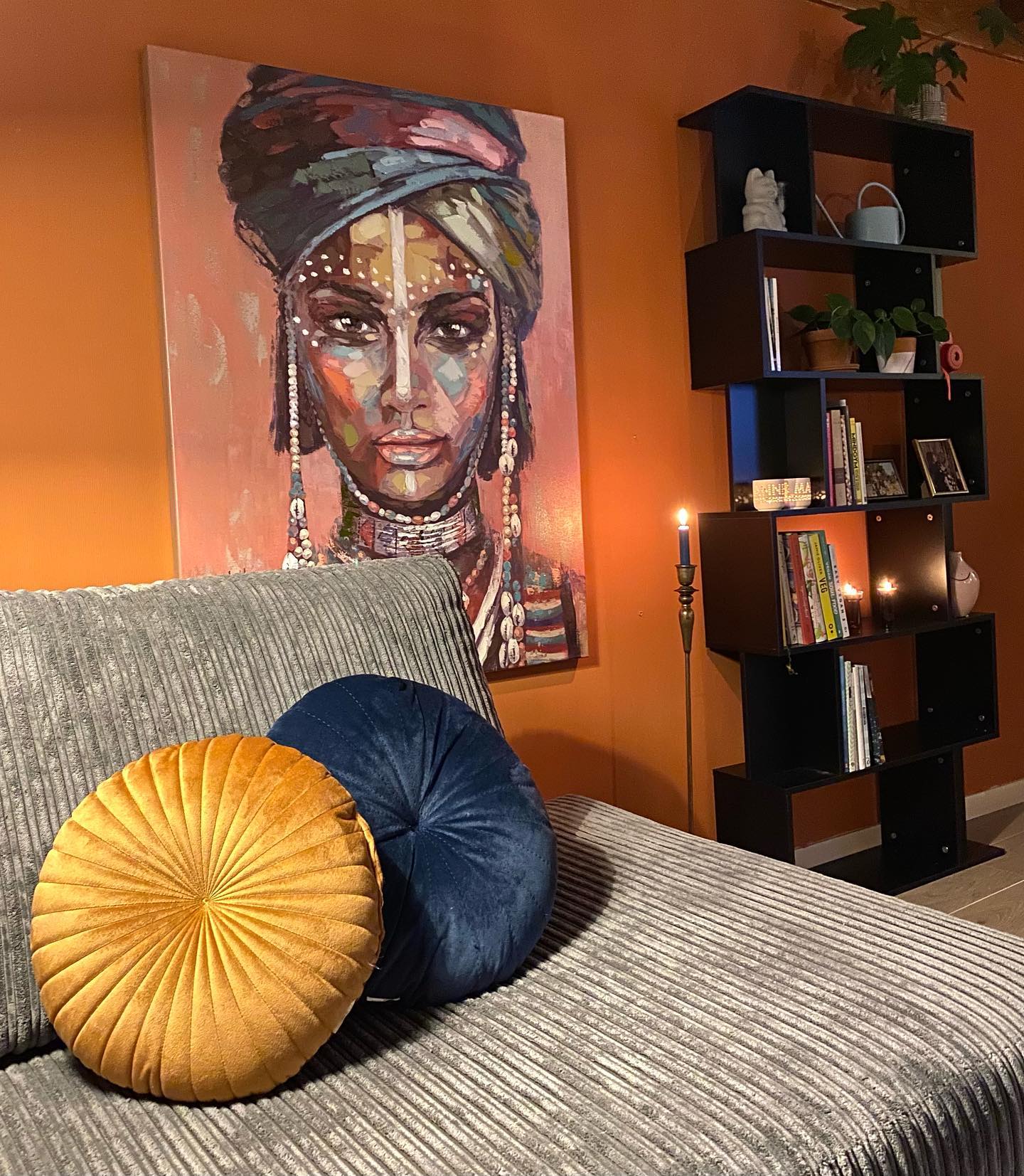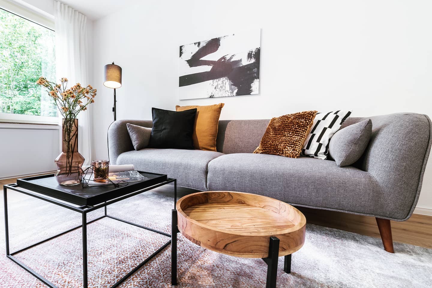 • Die restlichen 10% sind die Akzentfarben. Die Wahl dieses Tons macht am meisten Spaß, da du Farbtupfer hinzufügen kannst, um dem Raum ein ausgeprägtes Gefühl zu verleihen. Verwende es leicht in Kissen, Überwürfen und anderen dekorativen Gegenständen. Darüber hinaus hast du die Flexibilität, diese Elemente nach Bedarf neu anzuordnen oder zu ersetzen, um das Design frisch zu halten.